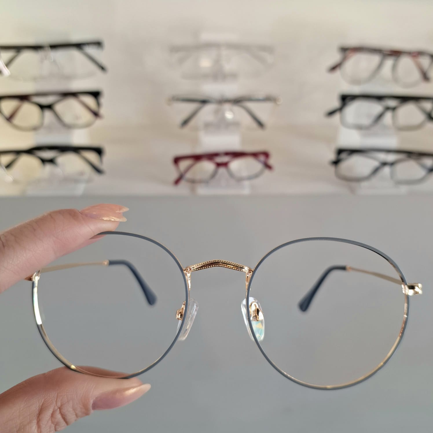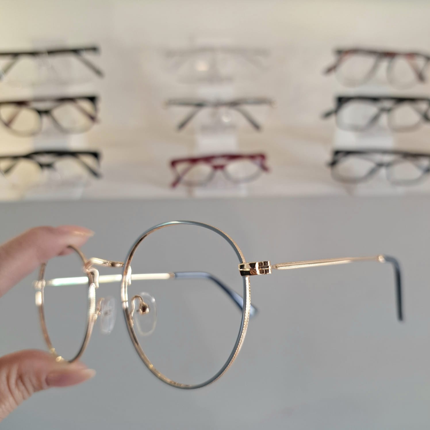 Armação Oval Cinza / Dourado Unissex – Monte Seus Óculos