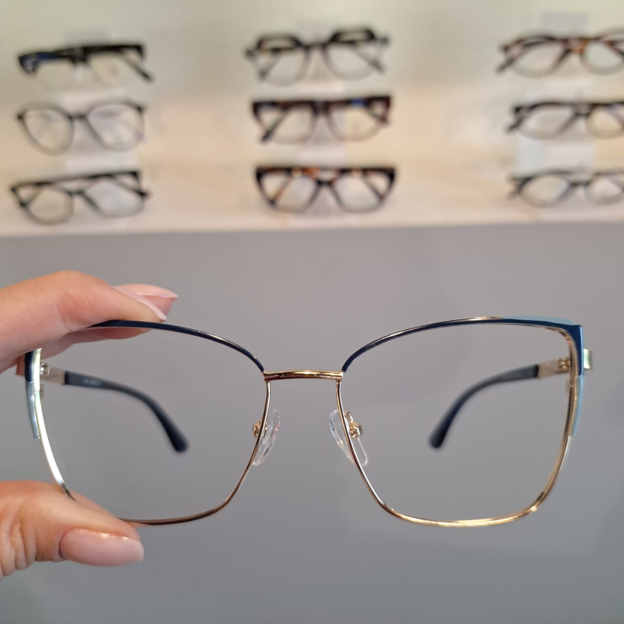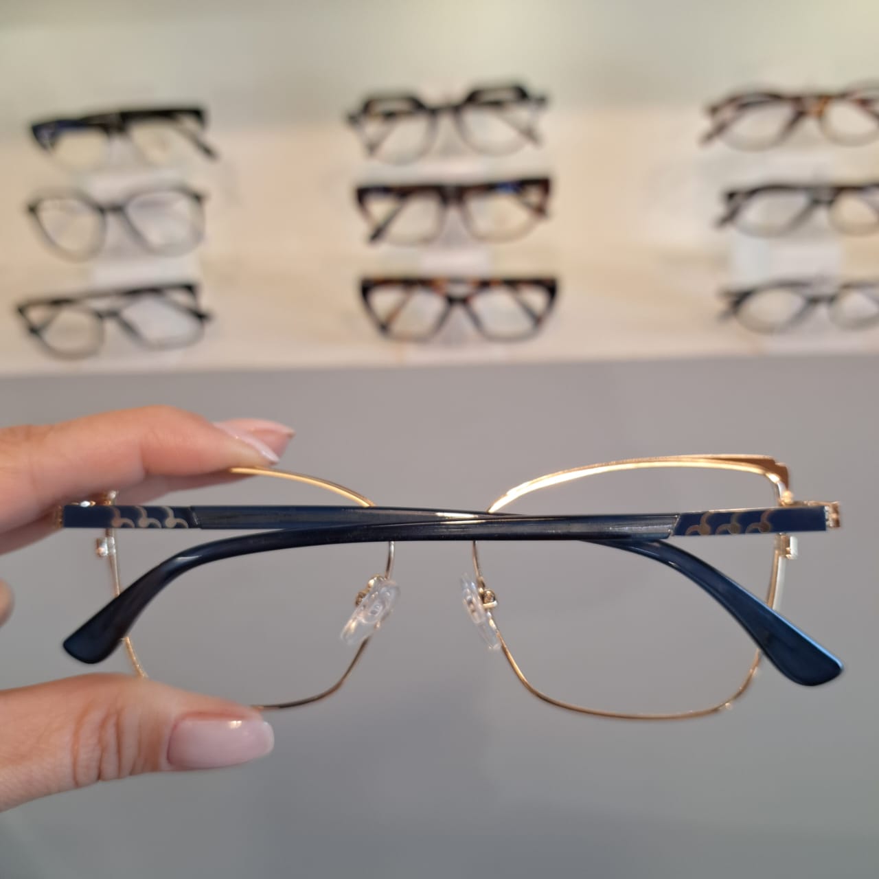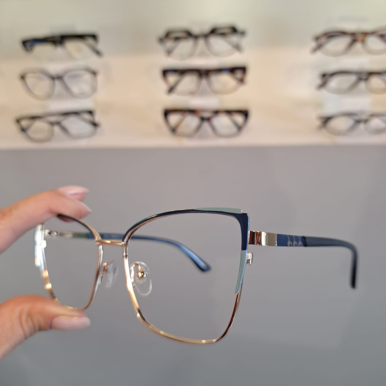Armação Quadrado Azul / Dourado Feminino – Monte Seus Óculos