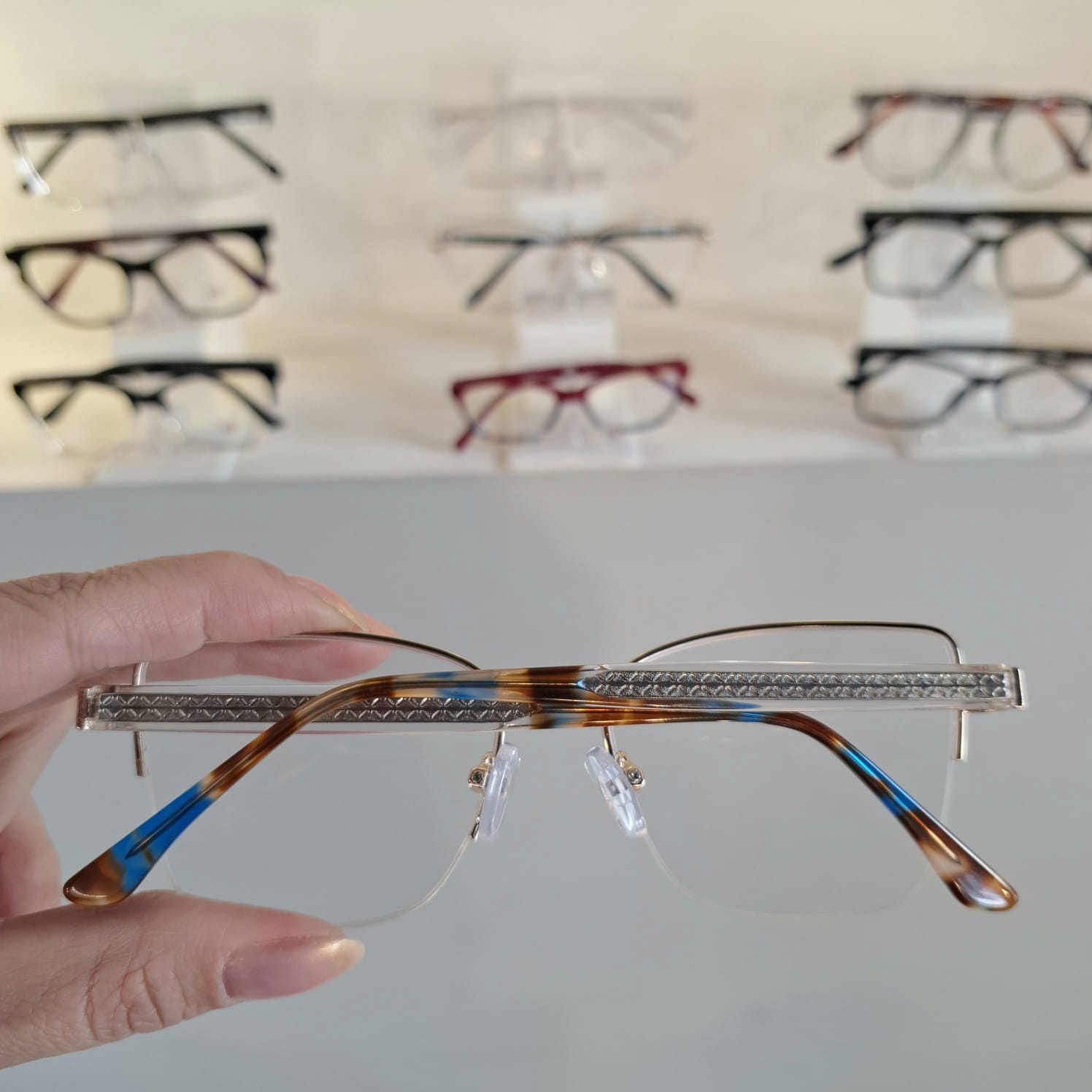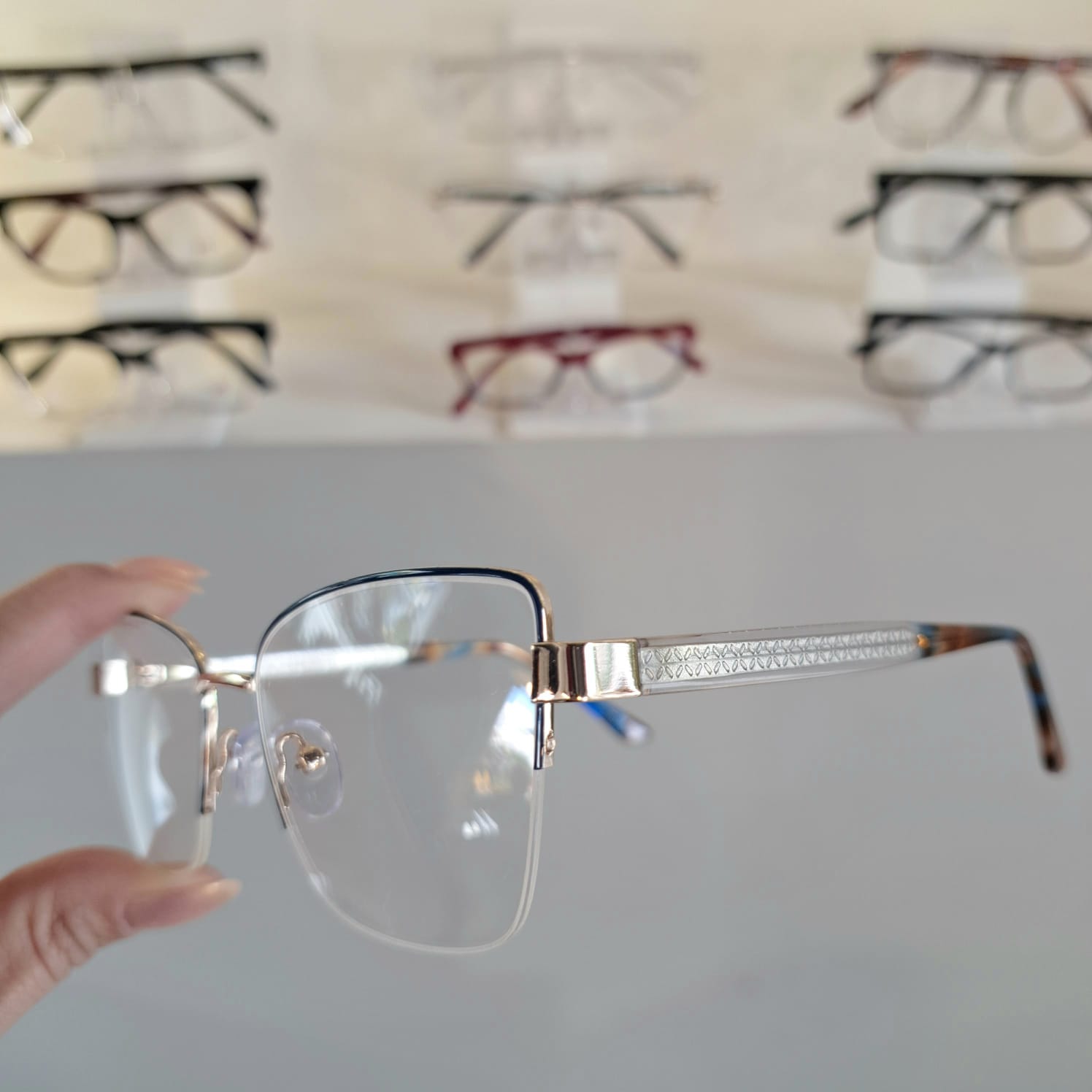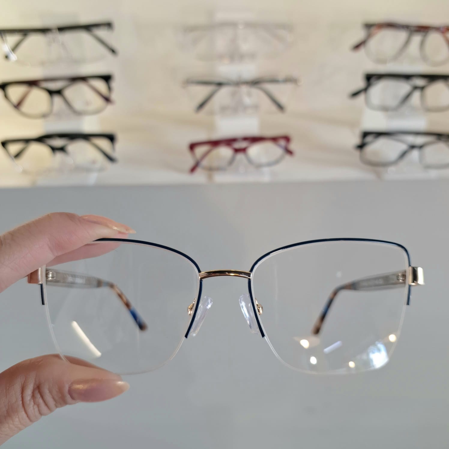 Armação Quadrado Azul / Dourado Feminino – Monte Seus Óculos