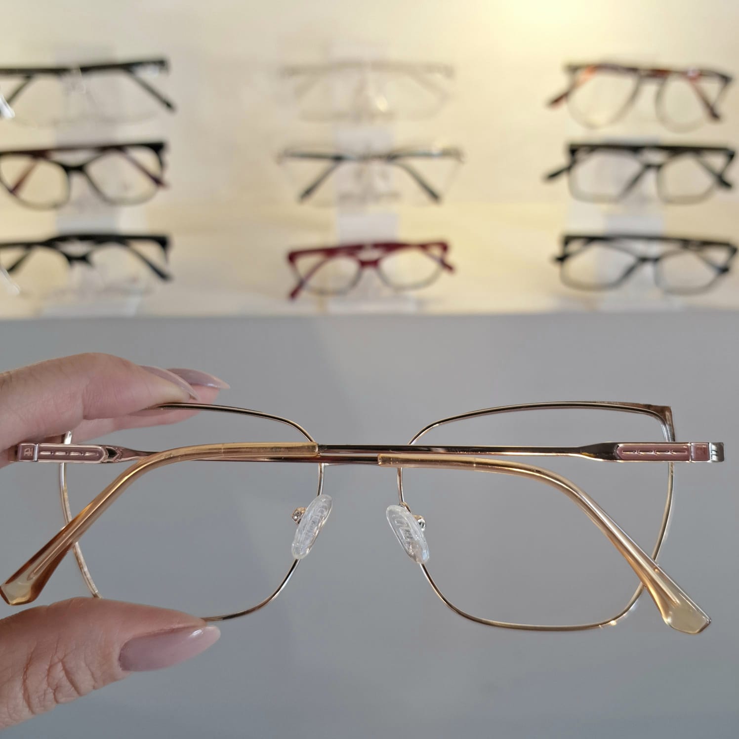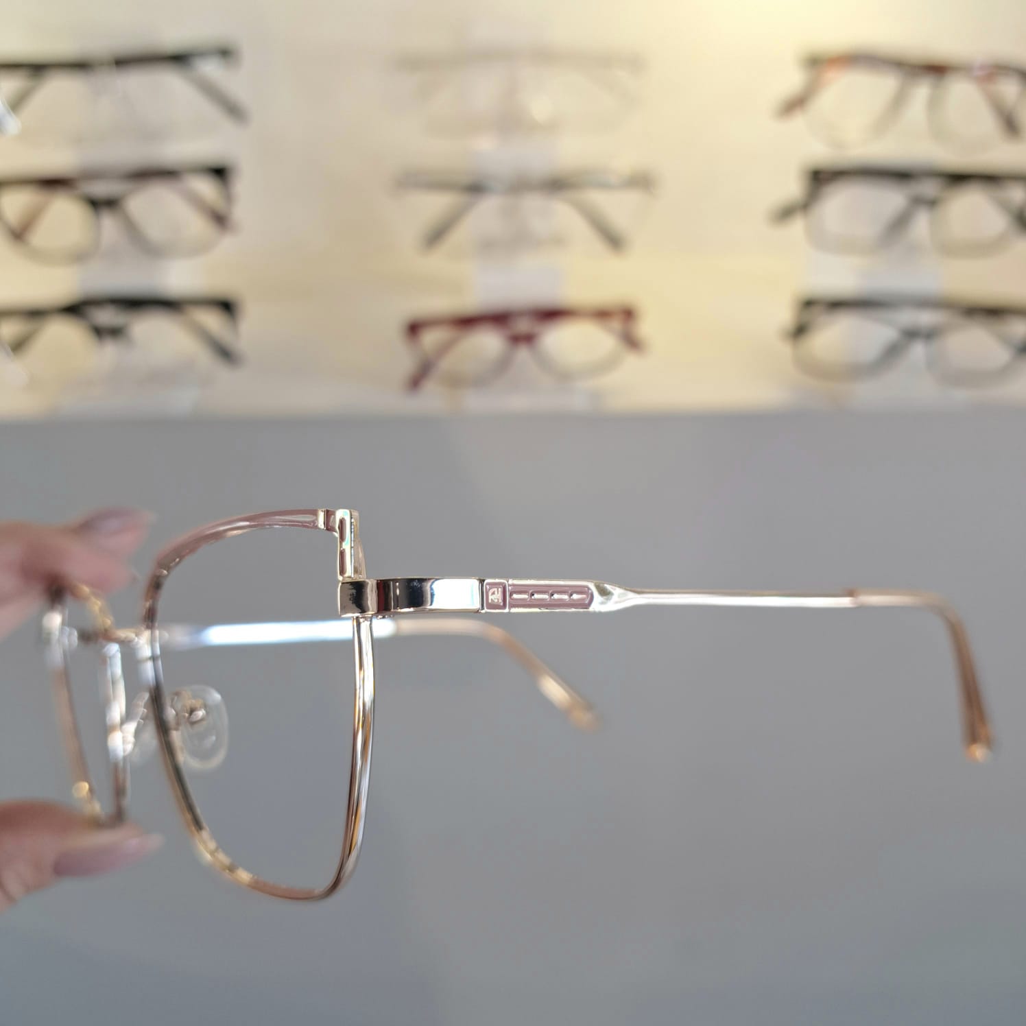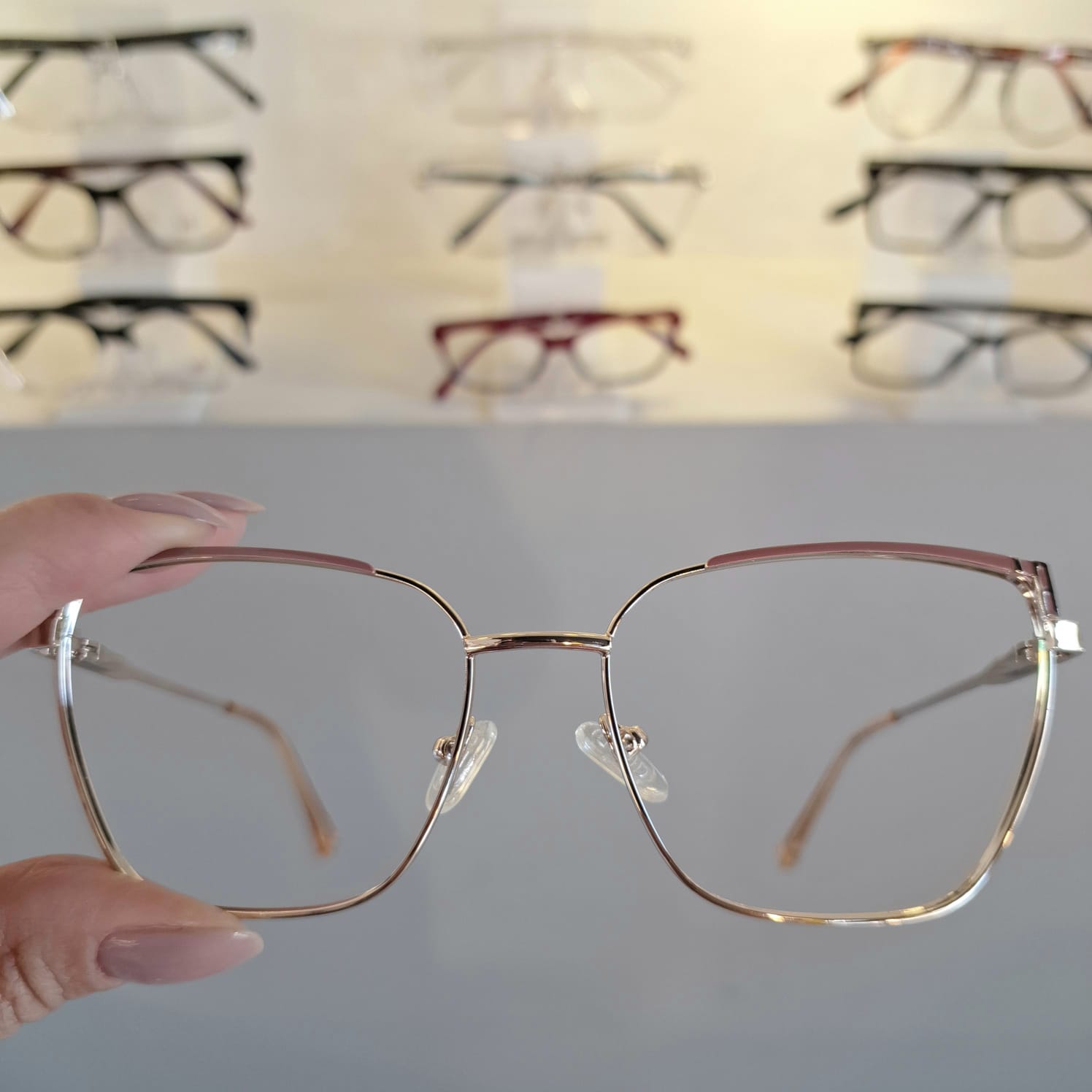 Armação Quadrado Dourado / Rose Feminino – Monte Seus Óculos
