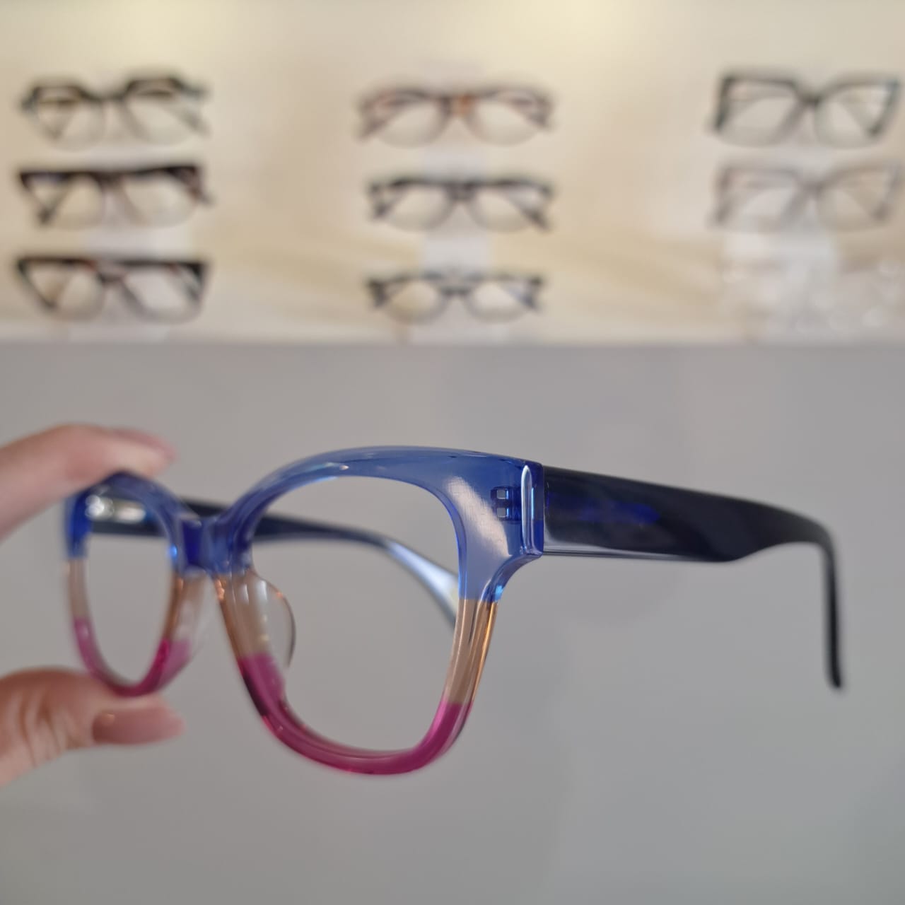 Armação Quadrado Pink / Azul / Marrom Feminino – Monte Seus Óculos
