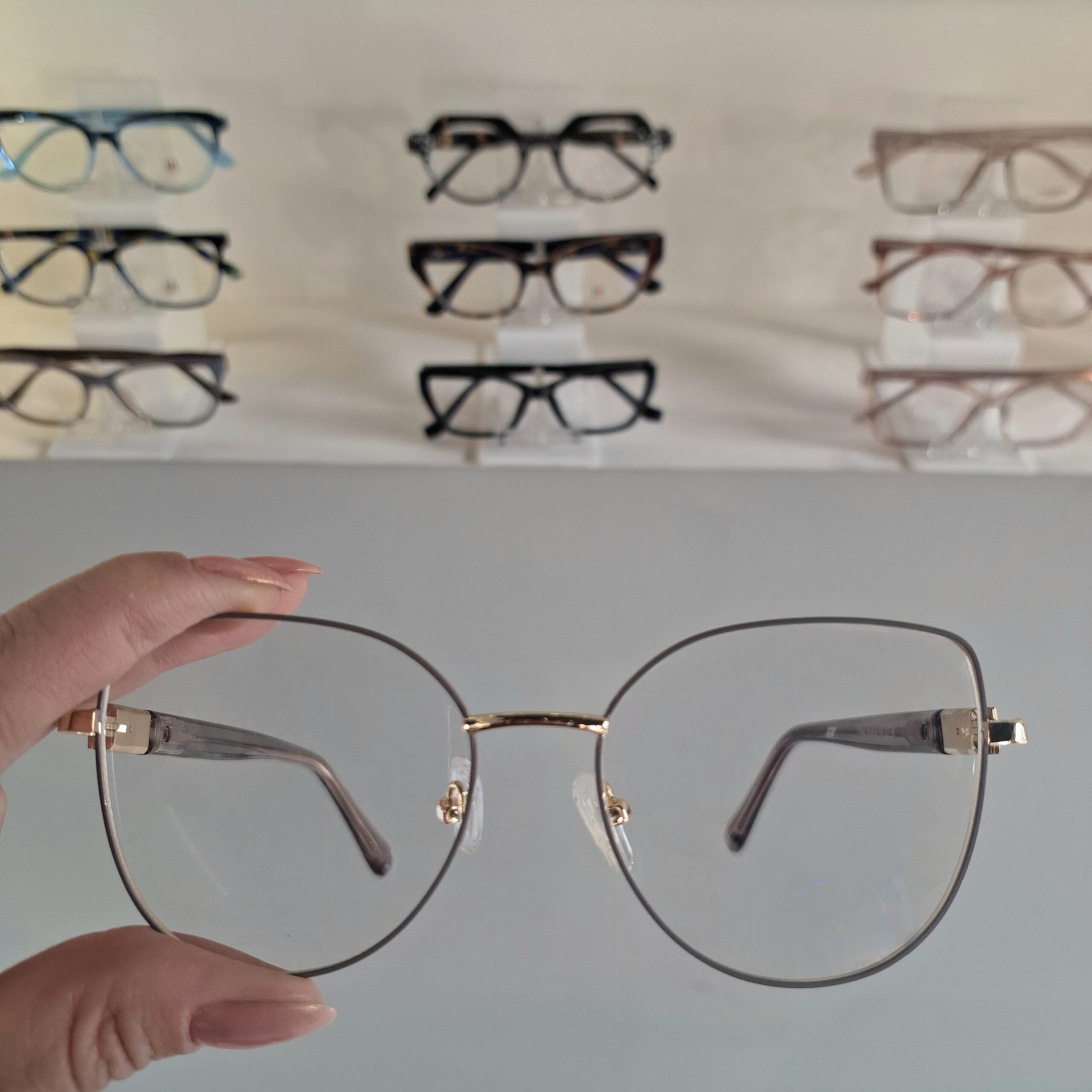 Óculos Gatinho Metal Feminino 042 Nude/Dourado