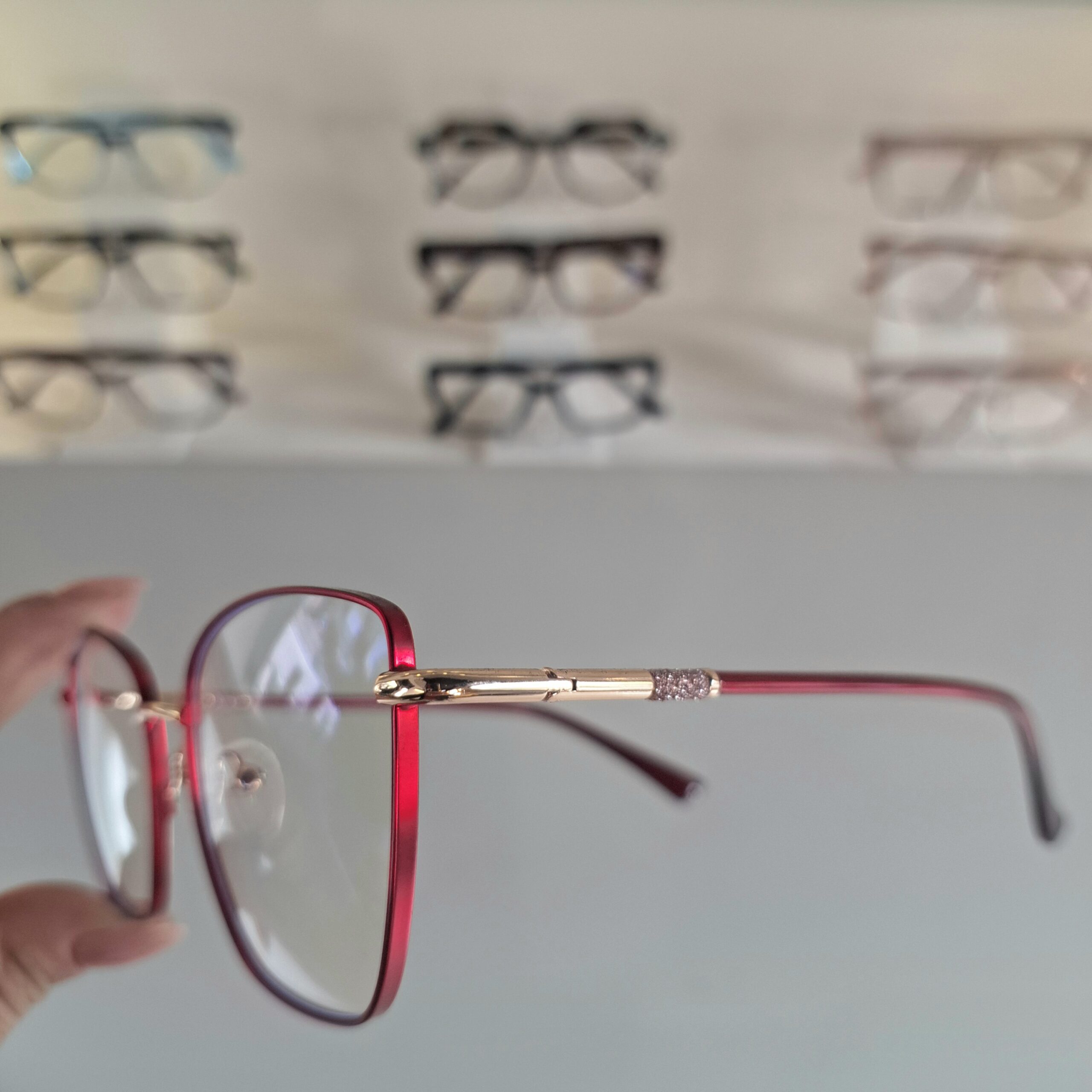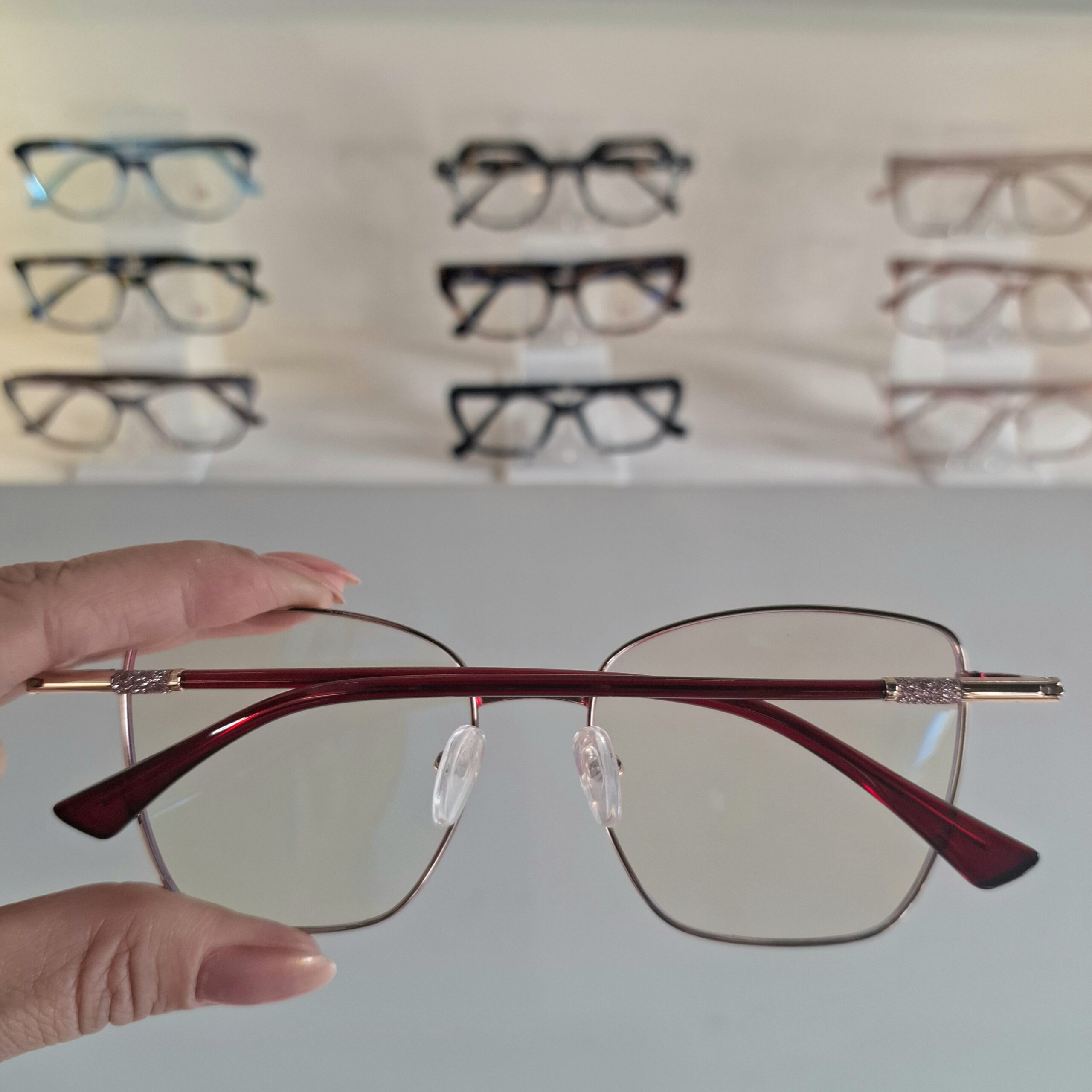Óculos Quadrado Metal Feminino 8613 Vinho/Dourado