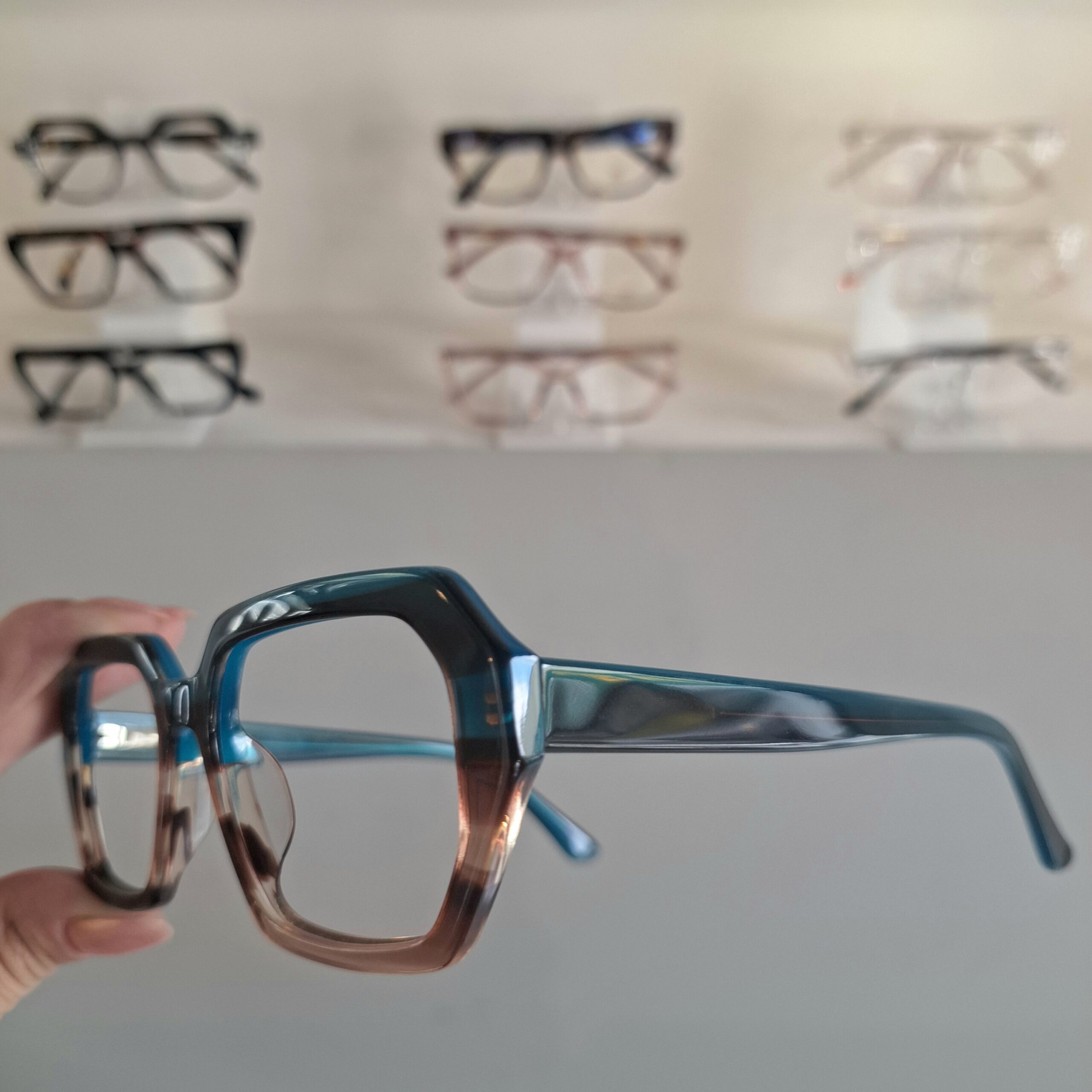 Óculos Retangular Acetato Feminino 622 Azul/Marrom